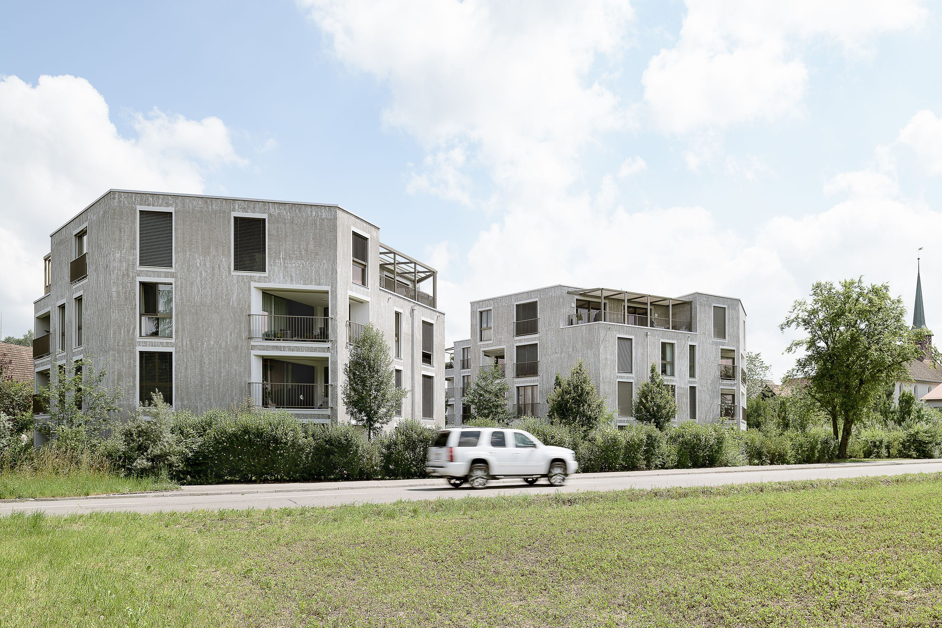 Das Projekt reagiert respektvoll auf die äusseren Gegebenheiten. Die polygonale Form ermöglicht die optimale Ausnutzung des Grundstücks. In Reminiszenz an die ursprüngliche Nutzung als Kulturland werden drei punktförmige Baukörper in eine parkartige Grünanlage gesetzt. Durch ihre Richtungslosigkeit nehmen die Häuser bewusst keinen Bezug auf und spannen so, analog zur umliegenden Altbebauung, grosszügige und fliessende Aussenräume auf. Die präzise Setzung und die abgewinkelten Formen ermöglichen weite und spannende Sichtbezüge bis hin zur Kirche. Zudem werden so die Baukörper auf eine dem Quartier angemessene Massstäblichkeit heruntergebrochen. Die klare Adressbildung mit den Hauptzugängen erfolgt durch eine gemeinsam geformte Hofsituation zur Zentralstrasse hin. Durch Rücksprünge im Erdgeschoss werden die Eingänge markiert sowie vor der Witterung geschützte, grosszügige Vorbereiche ausgebildet.